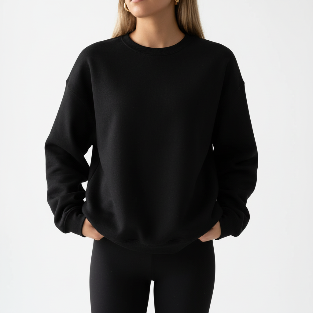 Stay cozy and effortlessly stylish with the TRENDHAUS Classic Black Crewneck Oversized Sweatshirt. Designed for maximum comfort, this timeless piece features a relaxed, oversized fit that pairs perfectly with leggings, jeans, or joggers for an everyday casual look.